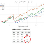 Government deficits work in a similar way: the government pumps net resources into the private sector (think of stimulus checks) by expanding its balance sheet and it doesn’t plan to tax them back.