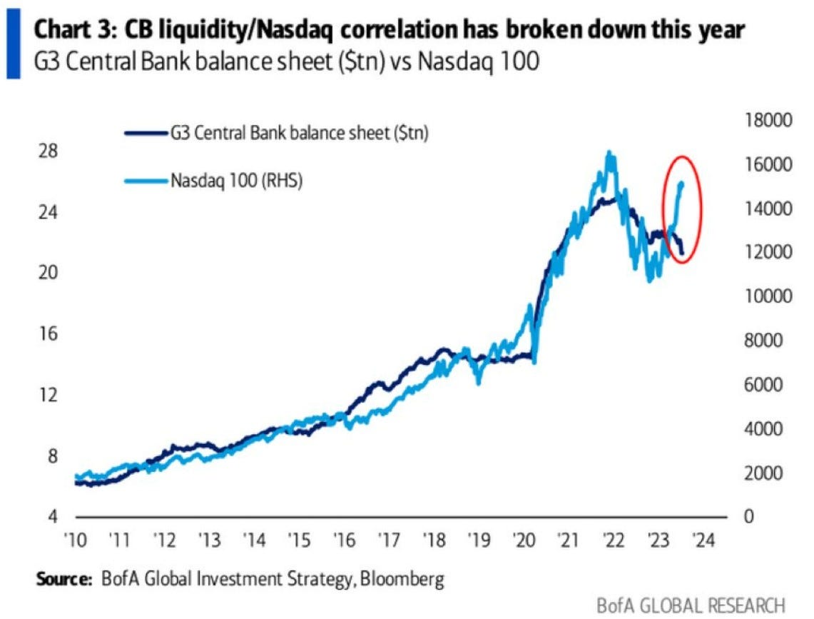Money in this case means bank reserves, and banks can’t and won’t use reserves to buy stocks - the direct relationship and simple narrative suggested by mainstream macro commentators…
